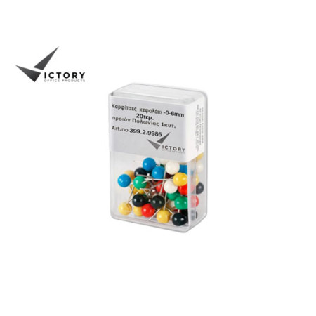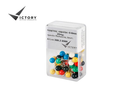 Victory Καρφίτσες κεφαλάκι για φελοπίνακα και χάρτη χρωματιστές σε πλαστικό κουτί 50 τεμαχίων