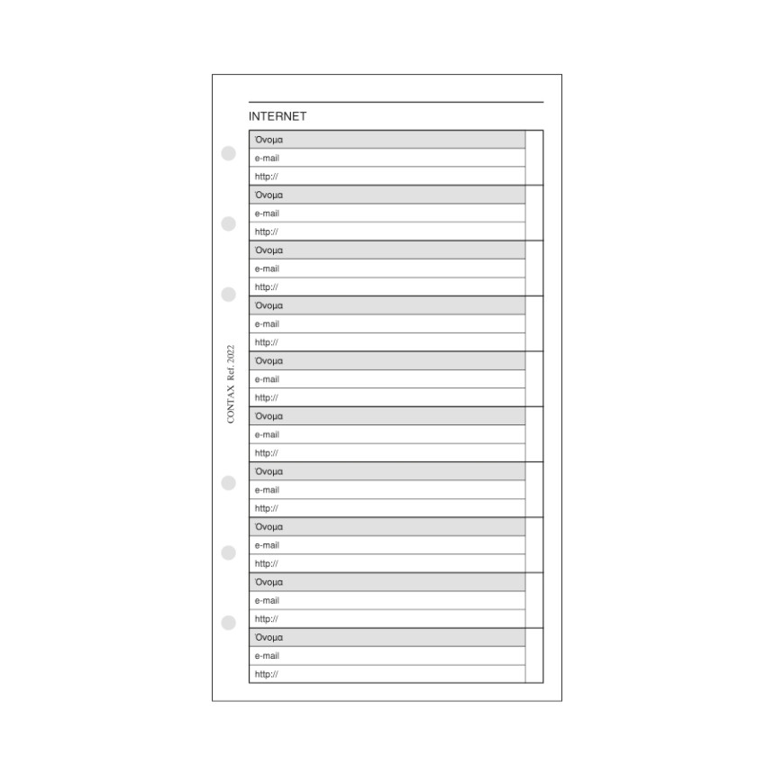 Contax Pesonal Ανταλλακτικά "Internet" 9,5χ17cm 20 φύλλων