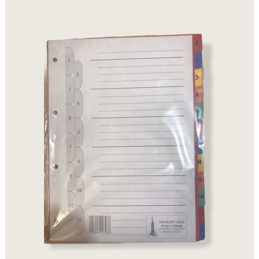 Διαχωριστικά Χάρτινα Α4 Αριθμητικά 1-12 χρωματιστά