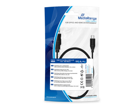Καλώδιο για κινητά MediaRange Charge and sync, USB 2.0 to micro USB 2.0 B plug, 1.0m, black (MRCS183)