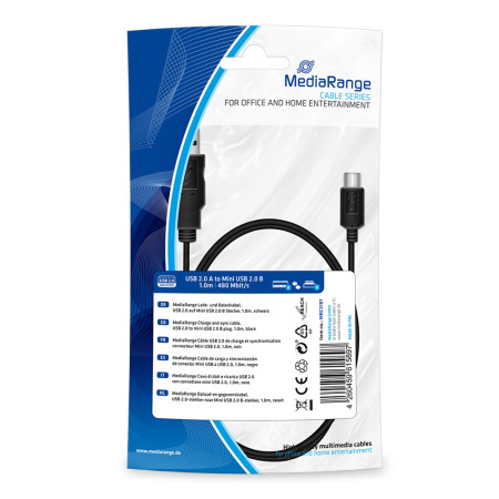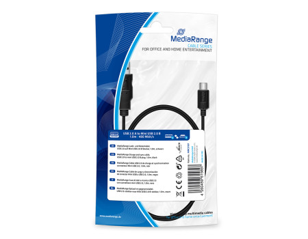 Καλώδιο MediaRange Charge and sync, USB 2.0 to mini USB 2.0 B plug, 1.0m, black (MRCS187)