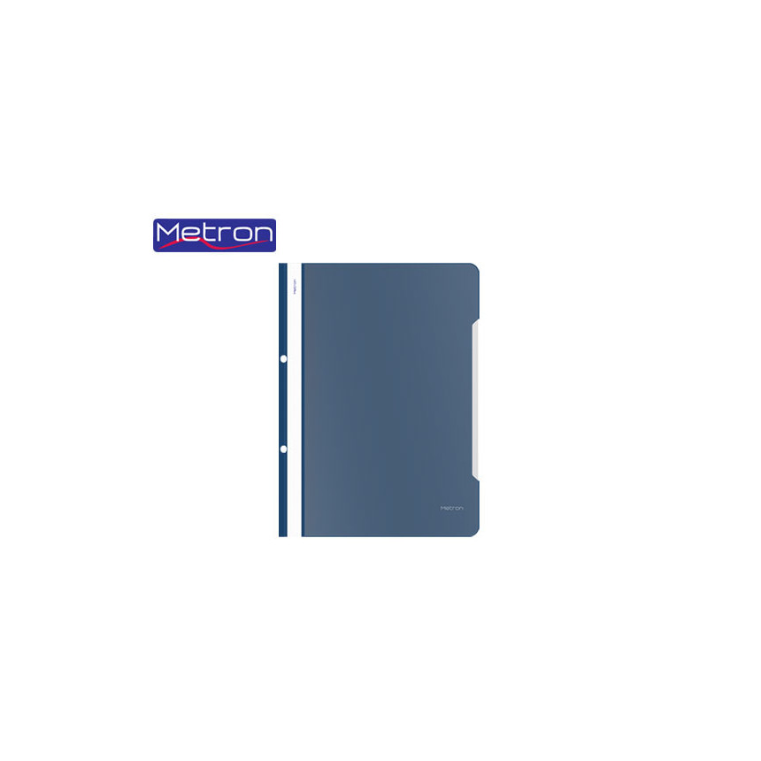 Πλαστικό Ντοσιέ Α4 Metron με έλασμα και τρύπες και με διαφανές εξώφυλλο.