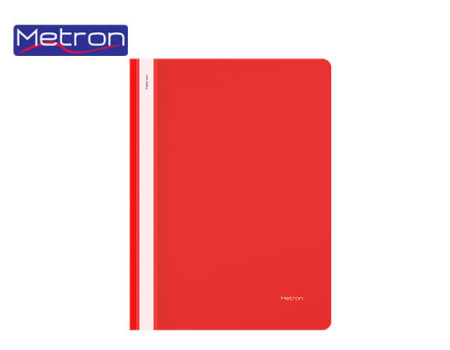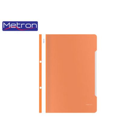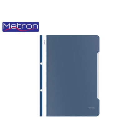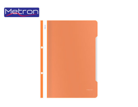 Πλαστικό Ντοσιέ Α4 Metron με έλασμα και τρύπες και με διαφανές εξώφυλλο.