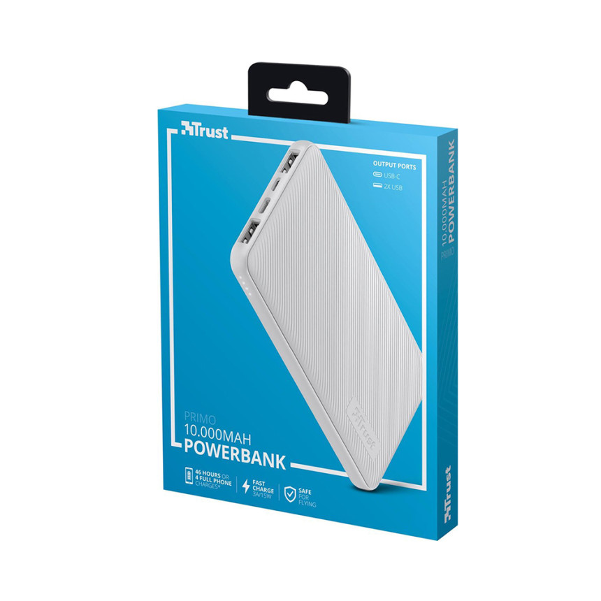 Γρήγορη φόρτιση, το Trust Primo Powerbank 10.000 mAh είναι η βολική πηγή ενέργειας όταν βρίσκεστε εν κινήσει.
